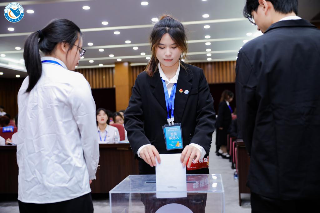 2023年11月18日上午,我校第十一次学生代表大会在立德楼B201报告厅顺利召开,校党委副书记、纪委书记蔡东宝,团市委副书记陈泽鑫,东莞市学生联合会执行主席钟楚瑶,相关部门负责同志,各学院党总支副书记出席会议,校院两级教师团干,学生会指导老师列席会议。各学院组成的5个联合代表团、146名学生代表参加会议。