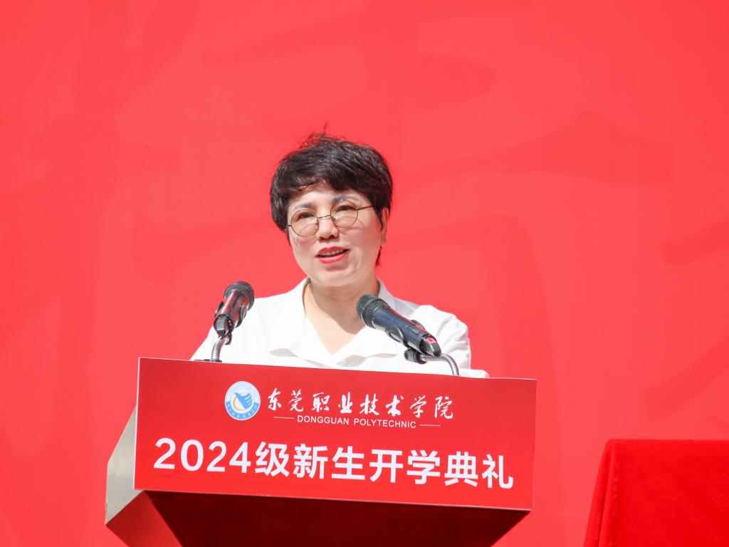 校党委书记司琪在典礼上发表了热情洋溢的讲话。她对来自祖国12个省(自治区、直辖市)的6659名2024级新同学表示热烈欢迎。她以《让青春拥有更多可能》为题,在致辞中向新同学们介绍了东莞的经济社会发展情况、东职院成立以来取得的各项成绩,以及那些挥洒青春汗水、在各个岗位上奋斗贡献的优秀东职学子事迹。同时,她对2024级新生提出四点建议:一要树立理想、崇德修身。二要奋斗不止、笃行不怠。三要乐学善思、精技强能。四要勇于探索、锐意创新。
