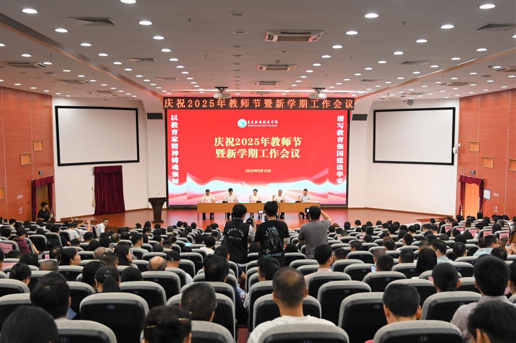9月10日上午,我校召开庆祝教师节暨新学期工作会议。学校党委书记司琪,党委副书记、校长贺定修,党委副书记、纪委书记蔡东宝,党委委员、副校长杨云奇,党委委员、宣传部部长杨洋出席会议,相关部门负责人及教师代表参加会议。会议表彰了在2024-2025学年中为学校发展做出突出贡献的先进集体和优秀个人。会议由党委副书记、纪委书记蔡东宝主持。