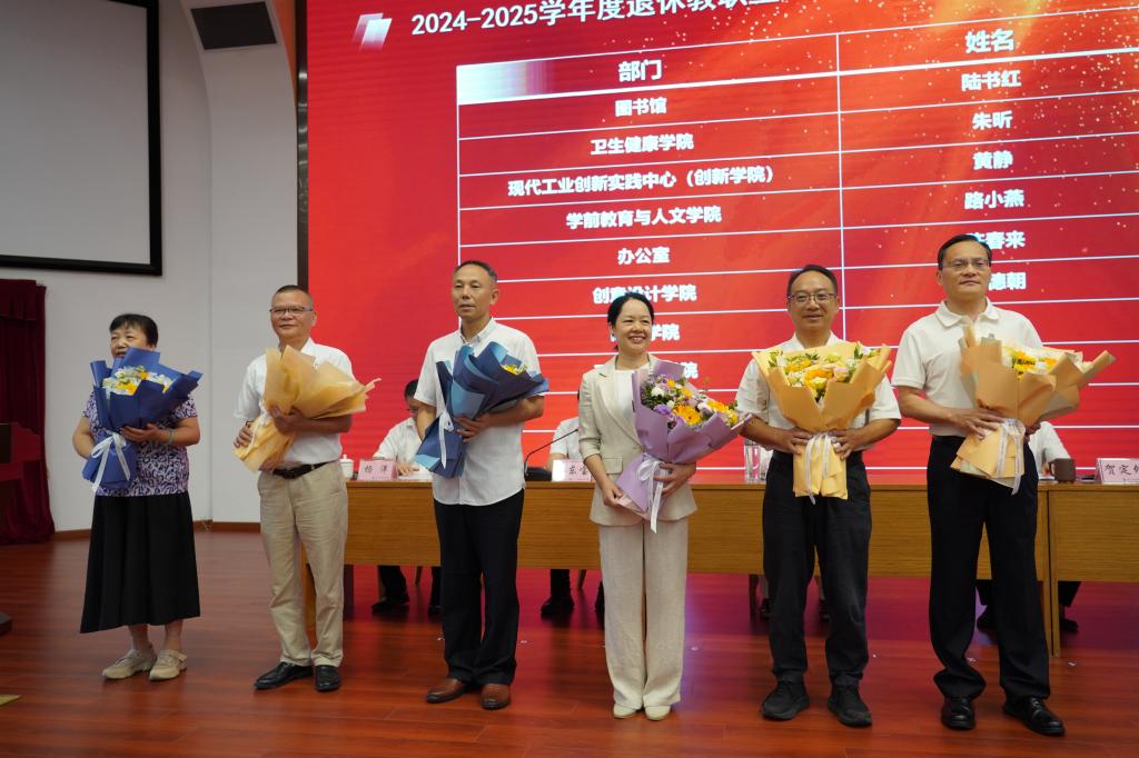 大会在庄严的国歌声中正式开始。党委委员、副校长杨云奇宣读了2024-2025学年度表彰决定。此次表彰名单囊括了国家级、省级、市级、校级的各类奖项,校领导对获奖个人以及团体依次颁奖。过去一年,我校在各类教学、科研、管理等活动中涌现出一大批先进集体和先进个人。会议现场,大家以热烈的掌声衷心祝贺获奖的个人及集体。同时,学生代表为荣休教职工代表献上鲜花,感谢他们对学校的辛勤付出与贡献,向无私敬业的他们致以美好祝福。