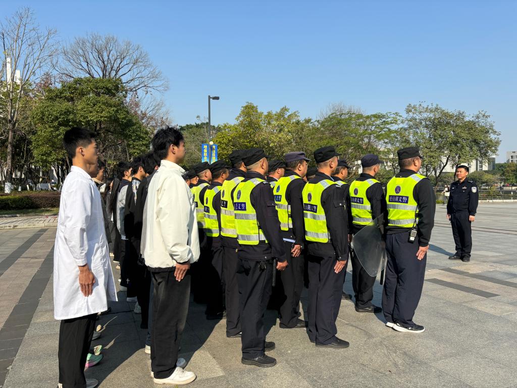 为切实强化校园安全防范,提升学校安全保卫应急处置管理水平和应急处突能力,12月19日上午,我校在学校南大门组织开展反恐防暴演练。演练邀请了红棉派出所教导员殷满林警官全程指导,学校保卫处、校卫队及部分学生代表共50余人参加此次演练。