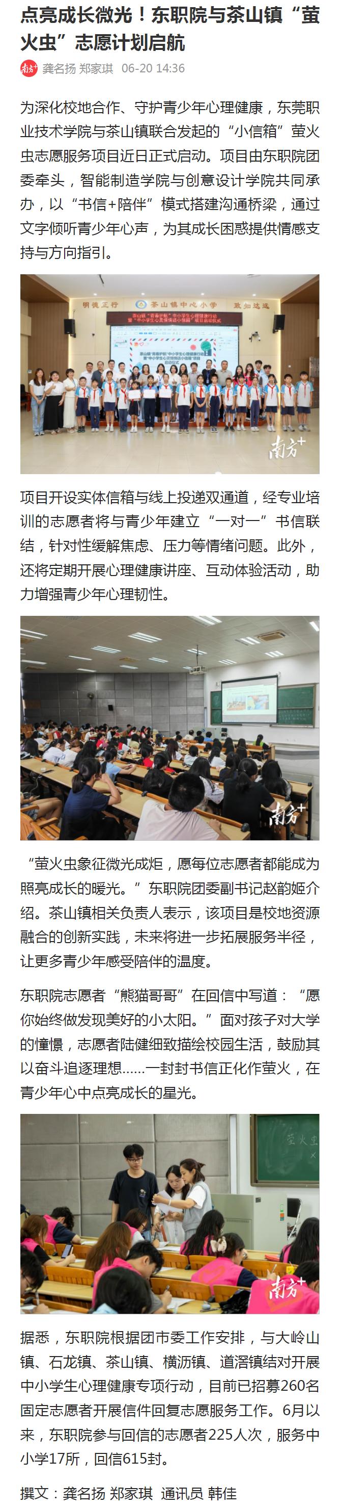 【南方+】点亮成长微光!东职院与茶山镇“萤火虫”志愿计划启航