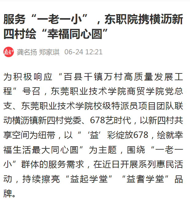 【南方+】服务“一老一小”,东职院携横沥新四村绘“幸福同心圆”